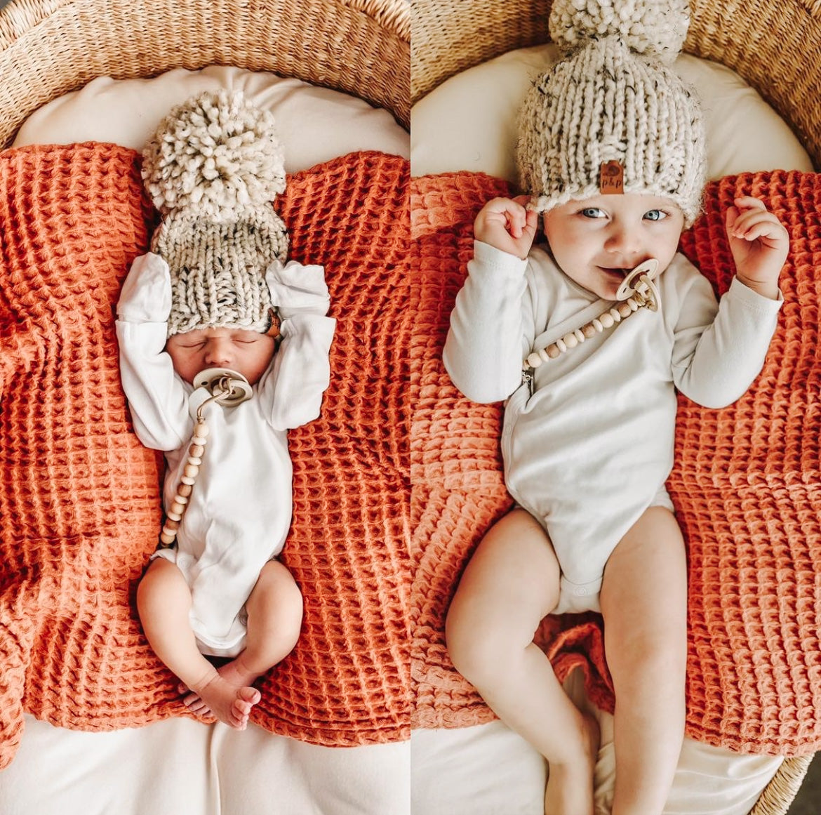 A simple and timeless hat in sizes for the whole family! We have a range of colors and some great neutral options. These handmade knit hats are made with a thick wool/acrylic blend. You choose the hat size, hat color, and pompom. Scroll through the images to see the color options!